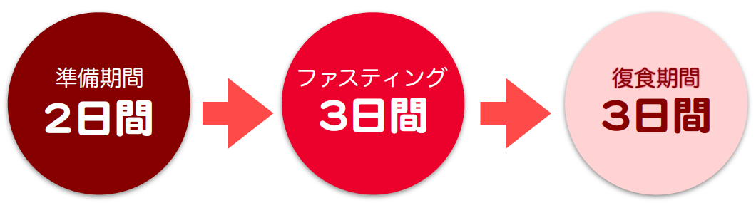 ファスティングの方法、ディア・ナチュラルでは「3日ファスティング」をメインに指導しております。