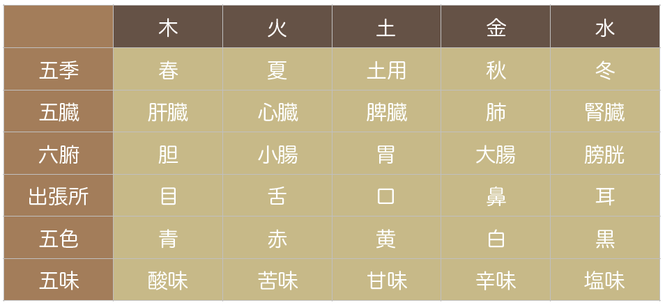 さて、今日ご紹介しました普段は馴染みのない「五行色体表」ですが、心身のバランスの取り方をうまくまとめてくれたナイスな表だと私は思っています(笑)