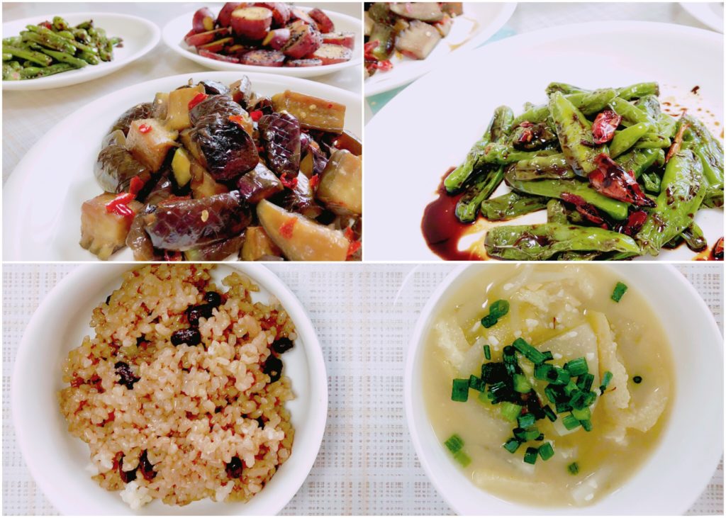 2種類のお惣菜とお味噌汁、とこ漬けがスタンダードな献立です。