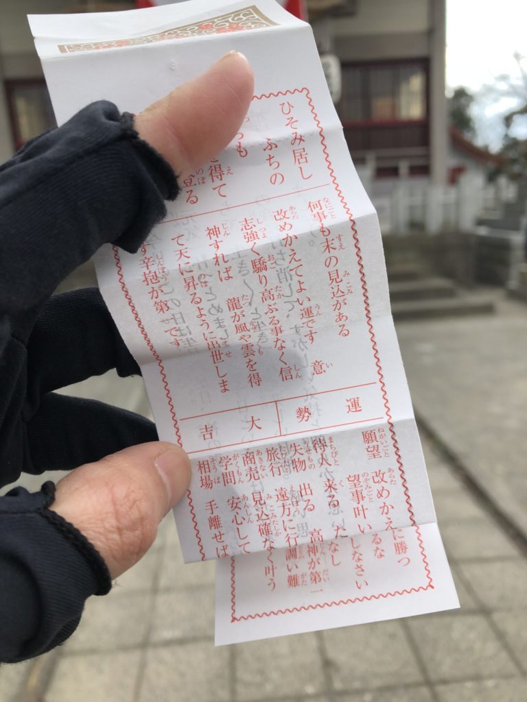 私は大きなお休みは頂きませんでしたが、元旦からいつもの神社へラン&腹筋へ。そしてもちろん、お正月ですからおみくじを・・・