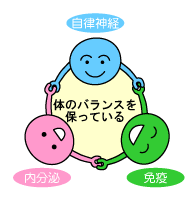 上の図が「治癒系のネットワーク」なのですが、このように自律神経系、内分泌系、免疫系は、密接に連携しながら体のバランスを保っています。